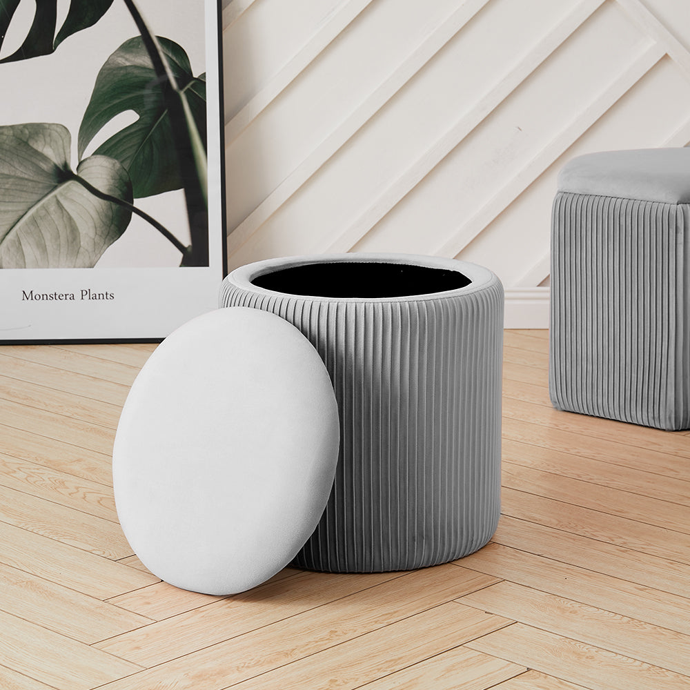38CM Dia Samtgepolsterter Runder Fußhocker mit Stauraum
