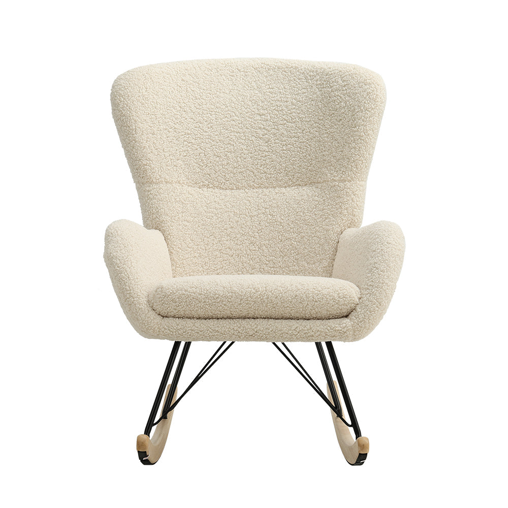 Beige gepolsterter Schaukelsessel aus Kunstwolle