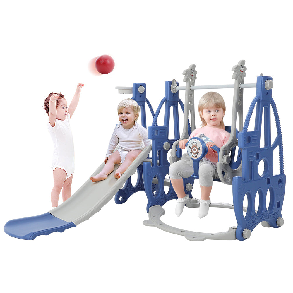 3-in-1 Kinder Spielplatz Set mit Rutsche, Schaukel und Basketballkorb